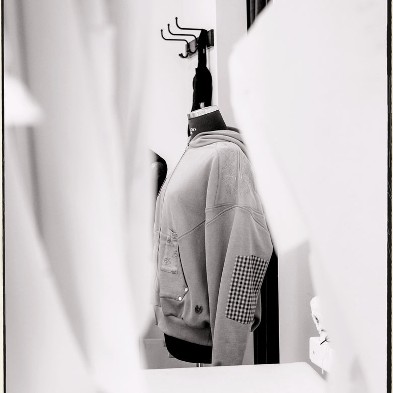 Every piece is treated as an object of design. Fits are sampled, refined, and tested again and again, shaped through patient adjustment and intention. We choose fabrics not for trends, but for how they feel, how they drape, and how they last.